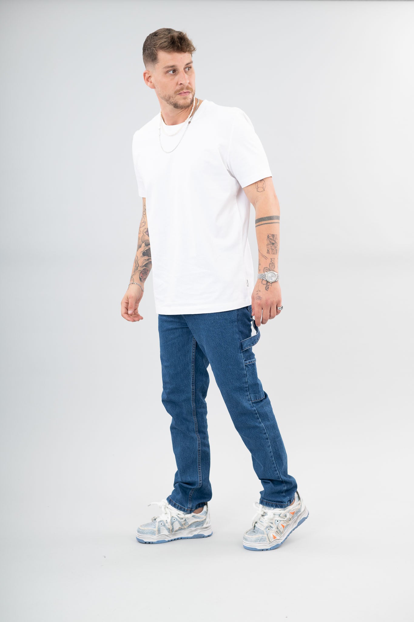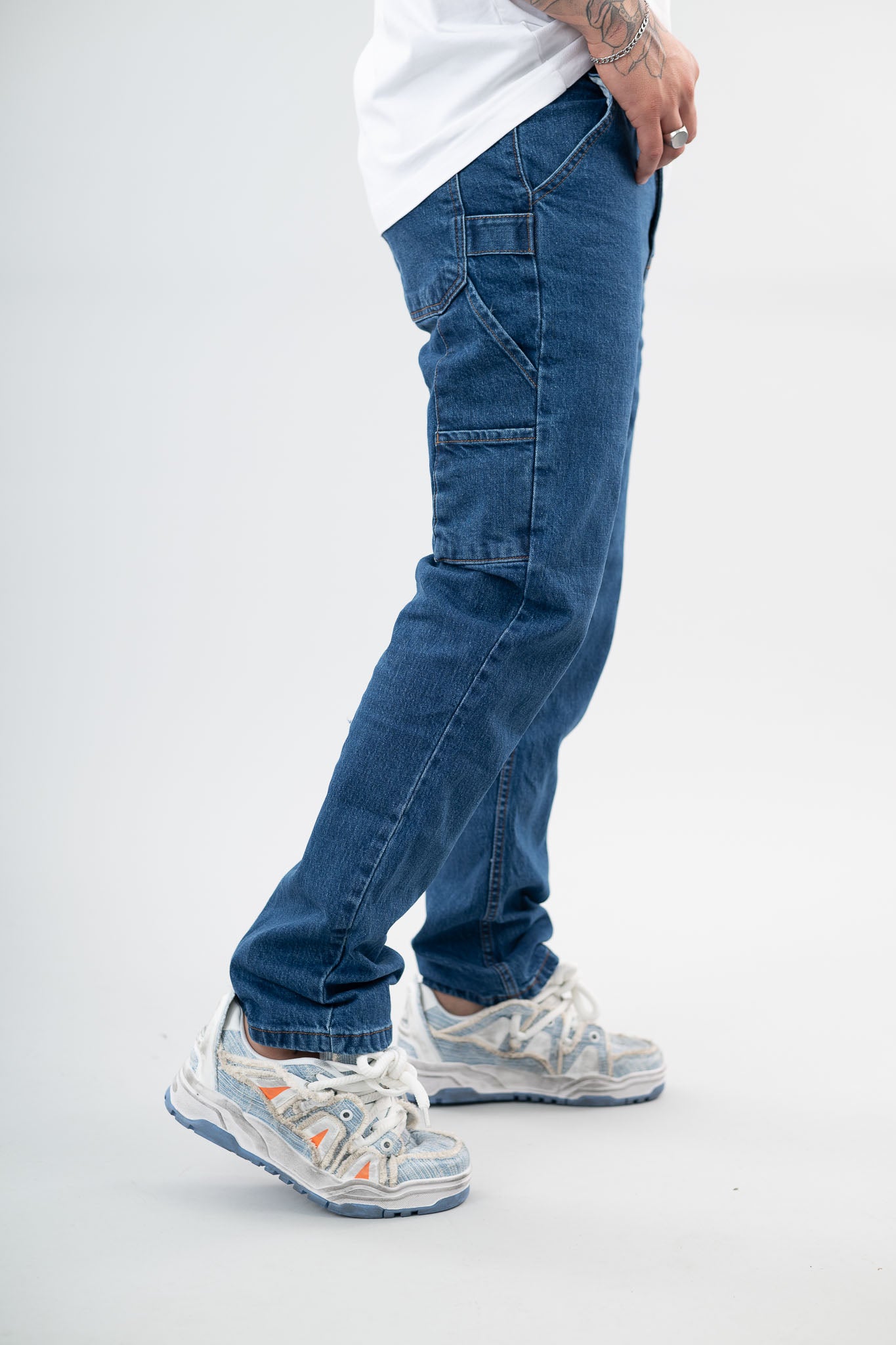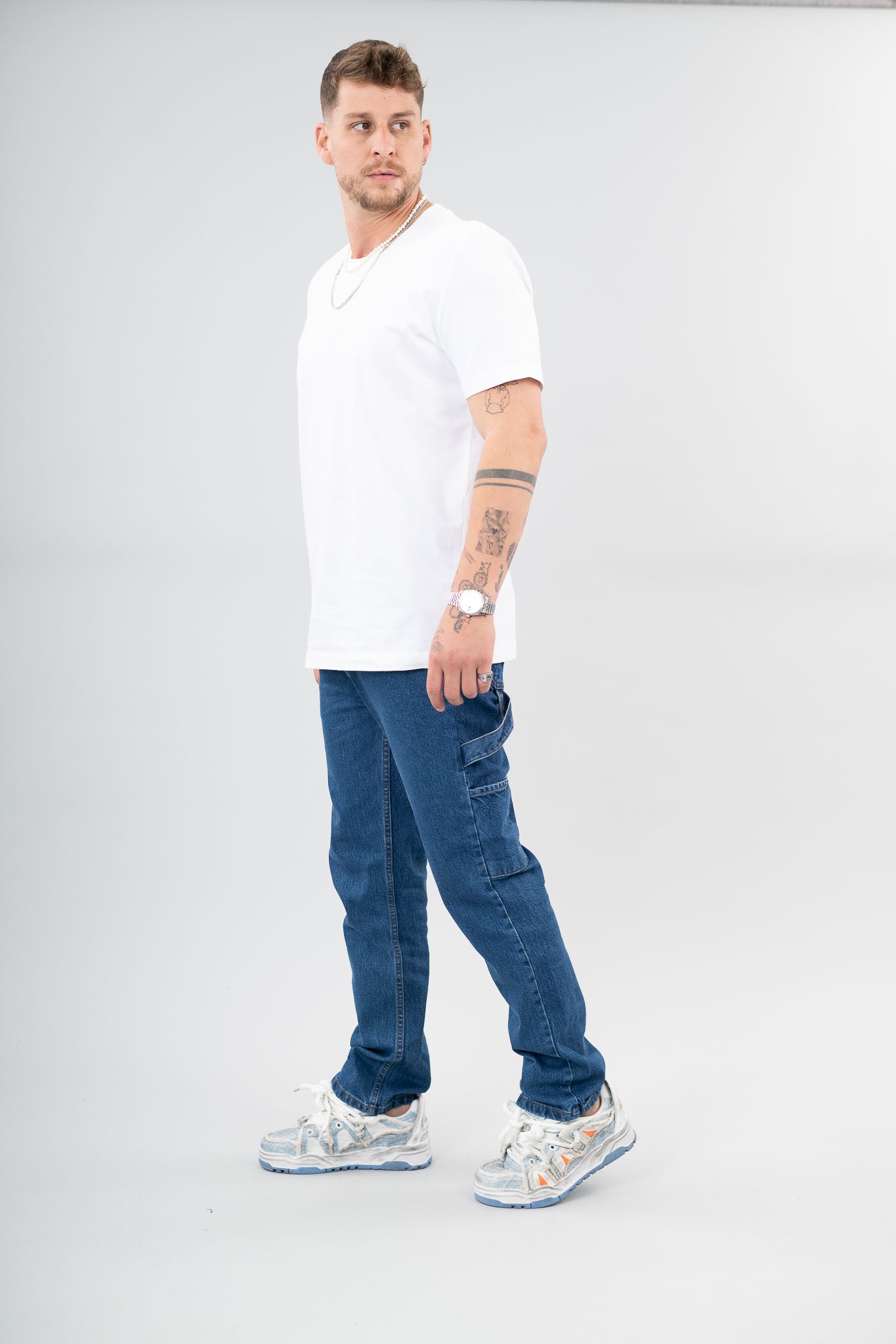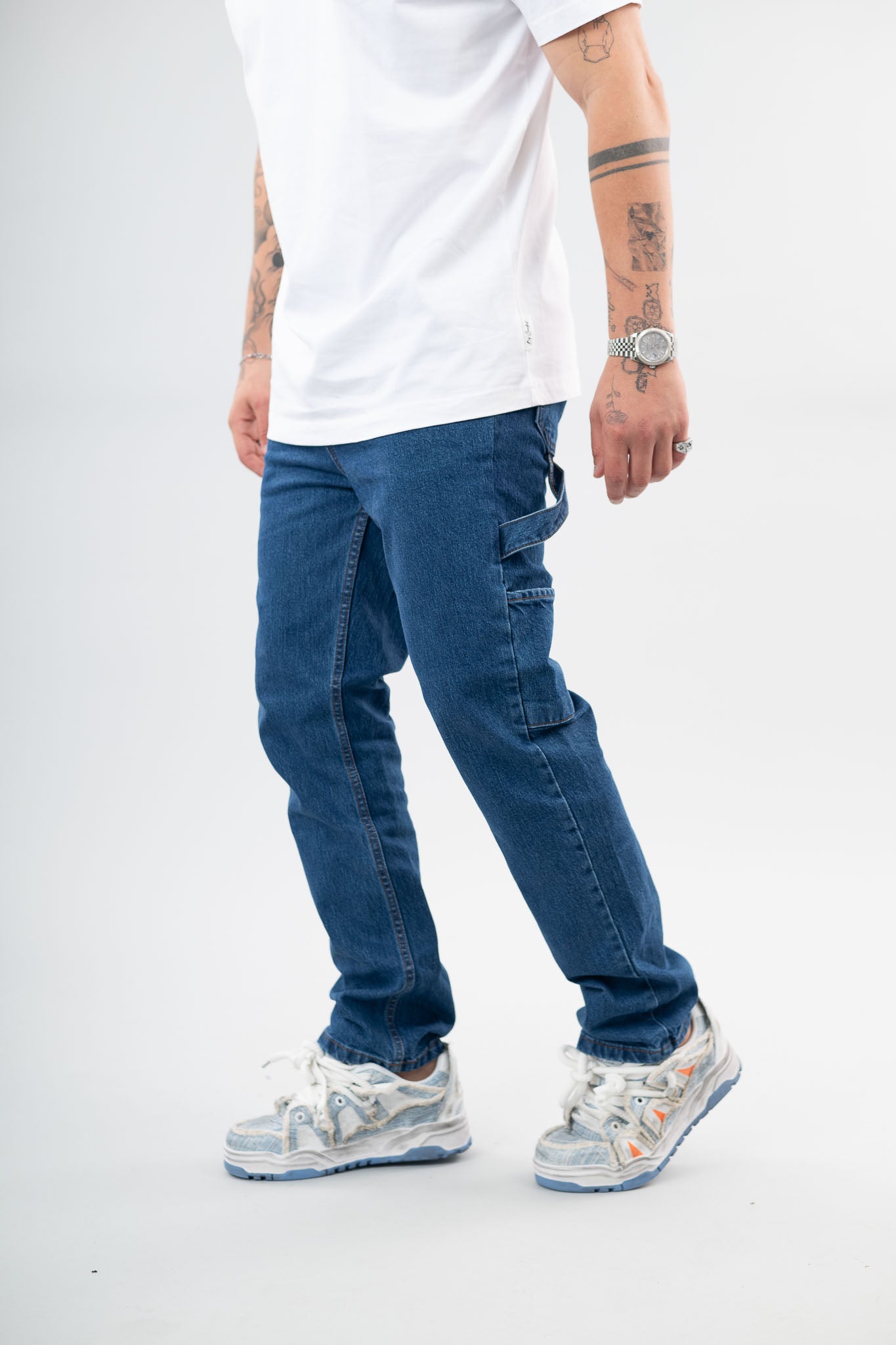 מידות הדוגמן - גובה 1.90 שוקל 90 מידה 36 גינס קרגו בגזרת אוברסייז בצבע כחול