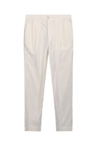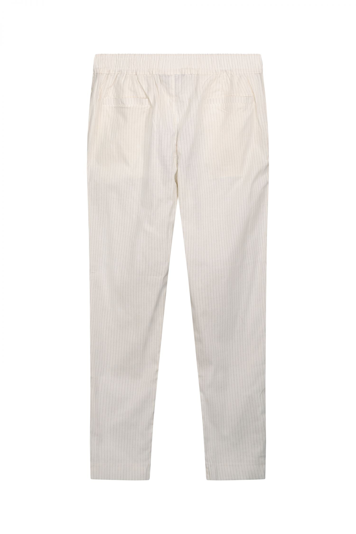 מידות הדוגמן - גובה 1.76 משקל 83 לובש מידה M מכנס אלגנט בגזרת slim מבד דריל במראה פשתן איכותי עם פסים עדינים