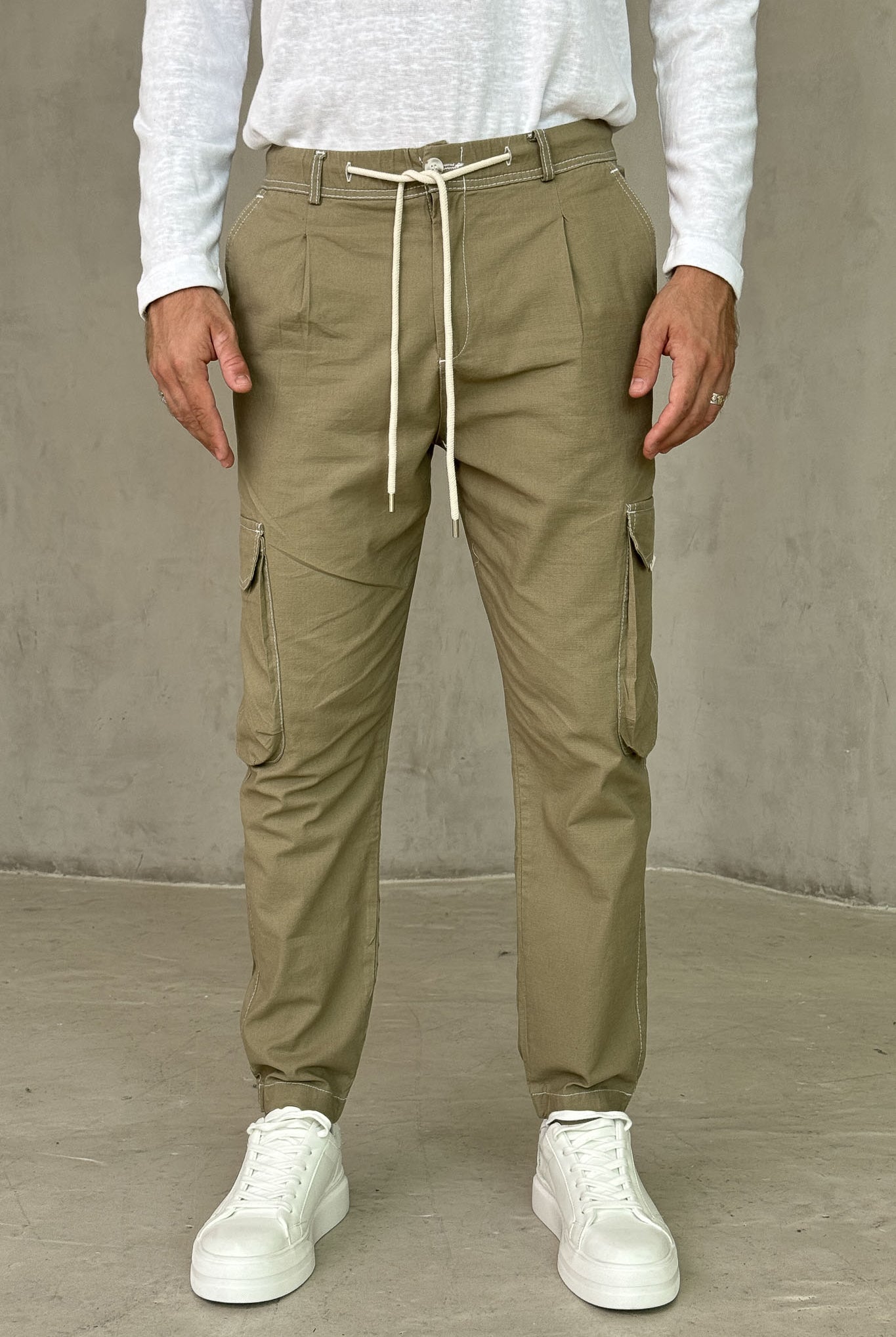 ג׳וגר בגוון חום עם כיסי צד פרקטיים ושרוך מותן לבן שמוסיף טאץ׳ נקי ומדויק.